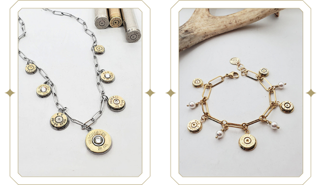 SureShot Jewelry™ is a handcrafted, artisan made collection, not your "run of the mill" bullet jewelry or shotshell jewelry. Our bullet designs are constructed with premium materials, chains & components, offering all of our own original, exclusive designs & with exceptional attention to detail in everything we create. This is what keeps customers coming back to SureShot Jewelry! If you are looking for expert craftsmanship, quality jewelry and best selection, from the oldest, largest and only patented collection in the country, you are in the right place! Since 2009, SureShot Jewelry is "Loaded with Style!"