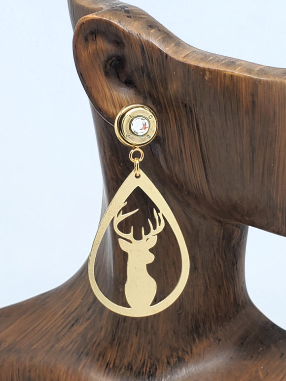Laser Cut Buck Head Teardrop .223 Post Dangle Bullet Earrings