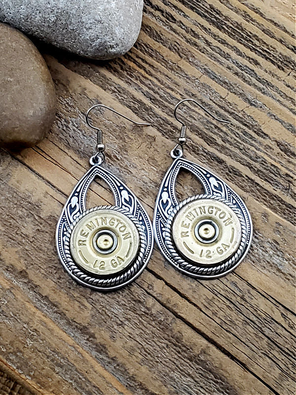 12 Gauge Shotshell Teardrop Dangle Earrings