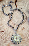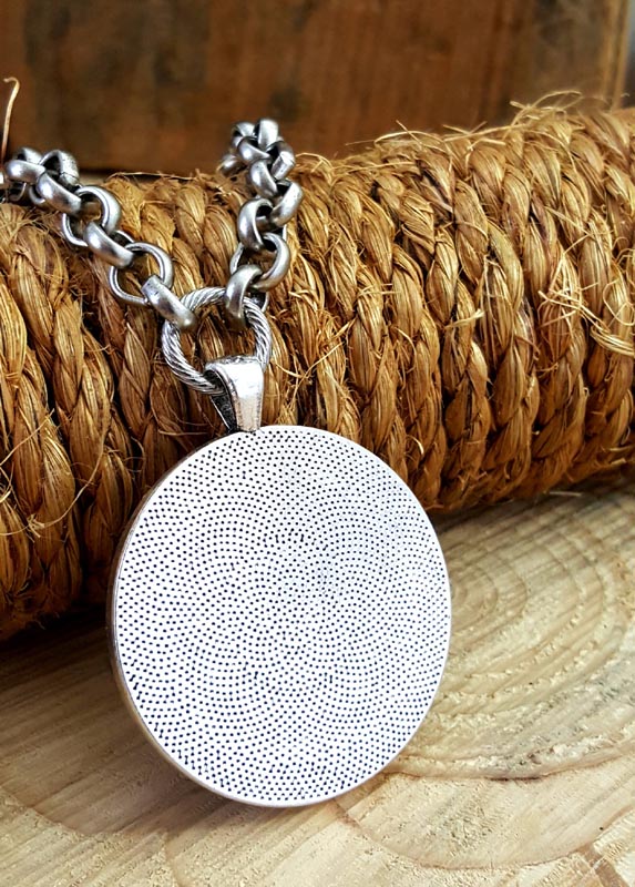 The pendant is hung from our antique silver, quality chunky rolo link chain.