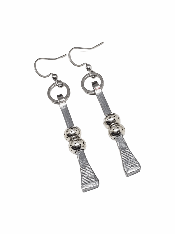 Each pair is handmade with care, using new/old stock horseshoe nails. Earrings are finished using antique silver textured beads giving the earrings an elevated designer look. We use stainless steel ring connectors and stainless beaded ear wires to complete the design. Quality construction ensures that you wear a piece of art that resonates with genuine passion and authenticity, making them perfect for any horse lover or those seeking to add a touch of individuality to their jewelry collection.