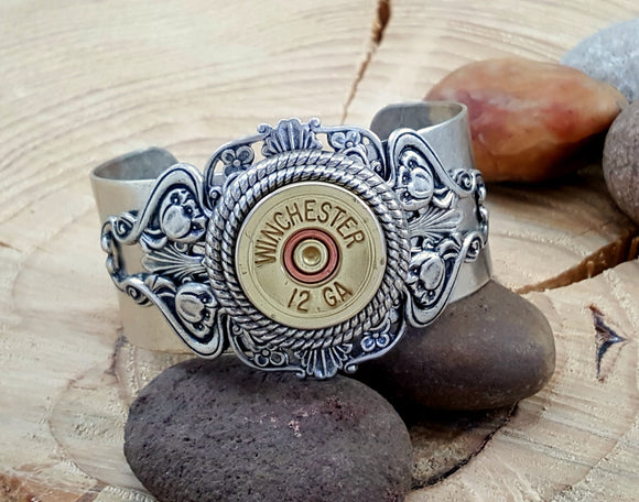 12 Gauge Filigree Shotshell Silver Cuff Bracelet