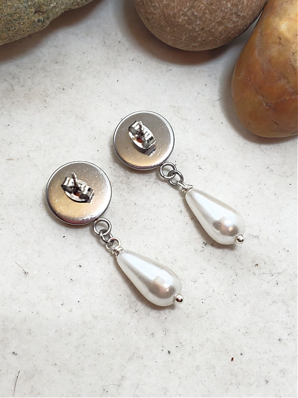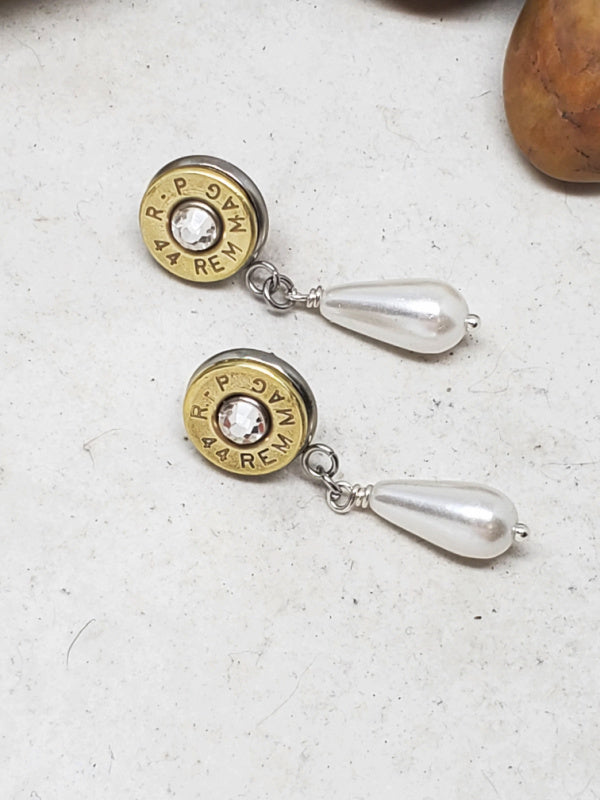 Pearl Teardrop Post Dangle Brass Bullet Earrings