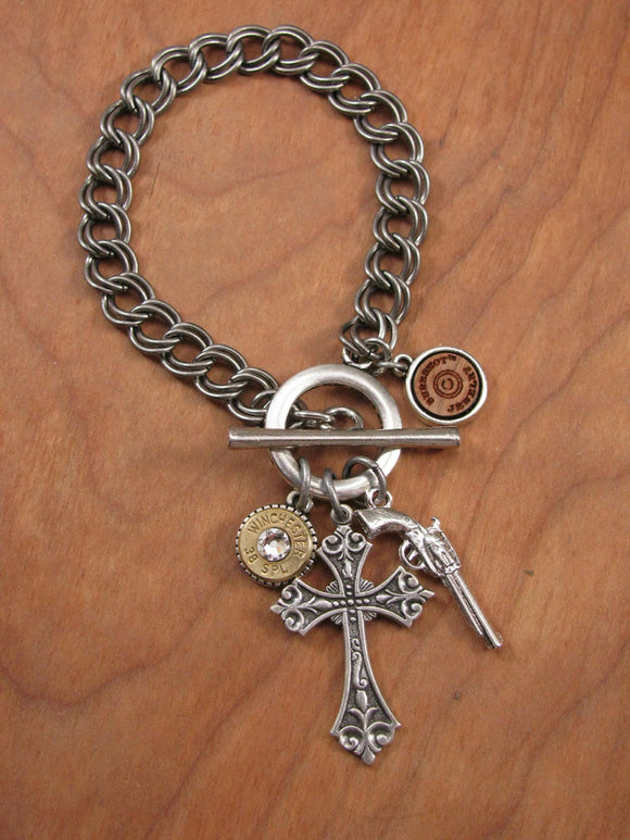 Loaded Bullet & Shotshell Mixed Metal Boot Bracelet