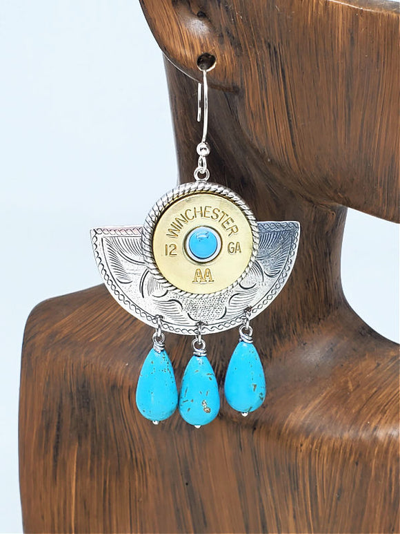 20 Gauge Shotshell Gold Beaded Marquis Wire Earrings