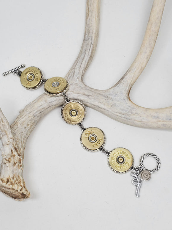 12g Shotshell, Concho & Leather Baseball Cuff Bracelet