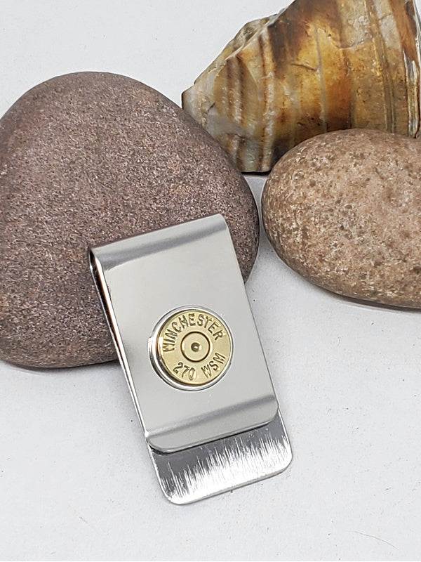 Features a hefty brass 270 Winchester Short Magnum (WSM) rifle casing for a gift that really packs a punch for any man! Rugged, masculine and smart looking!