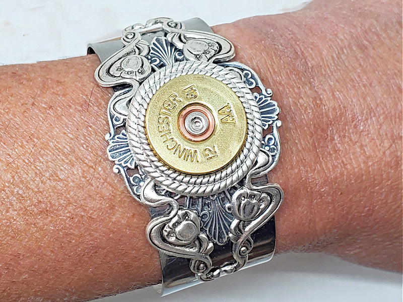 12 Gauge Filigree Shotshell Silver Cuff Bracelet