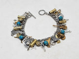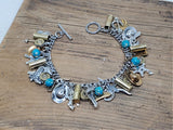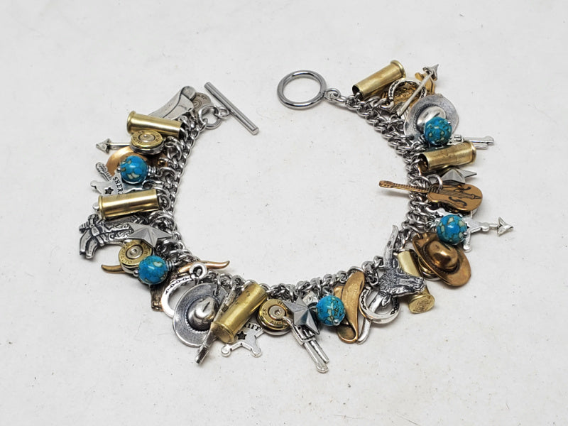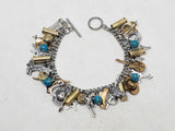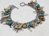 Mixed Metal Loaded Country & Western, Cowboy Themed Turquoise Beaded Charm Bracelet from SureShot Jewelry