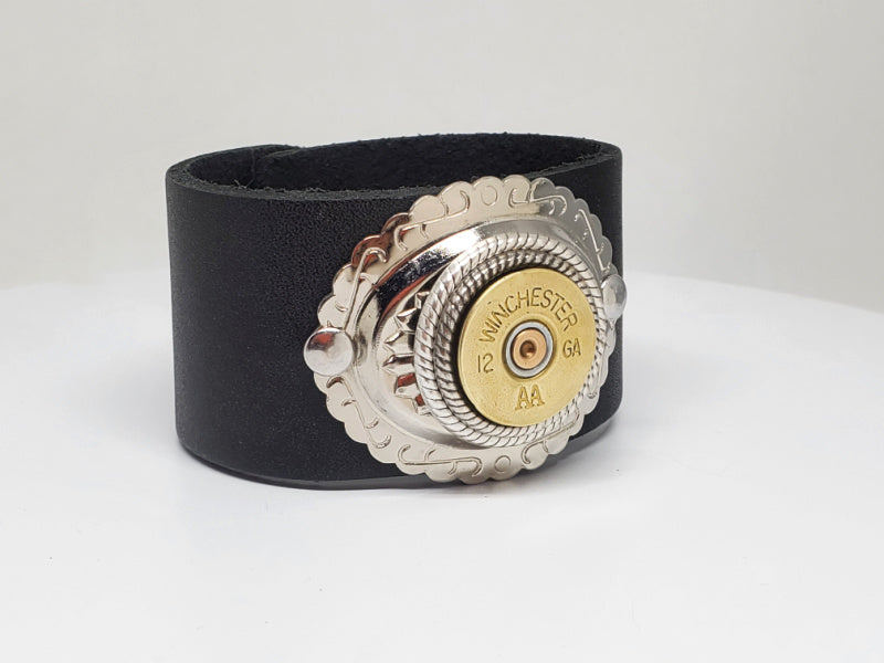 12 Gauge Shotshell Oval Concho Black Cuff Bracelet