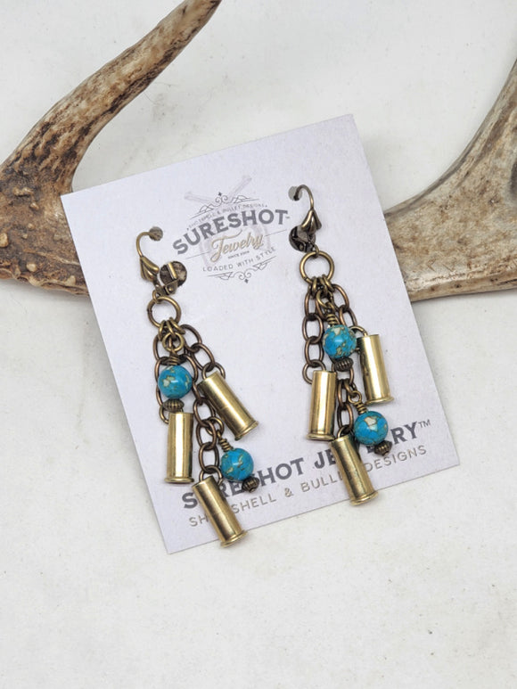 Triple 22 Caliber Turquoise Beaded Bullet Earrings