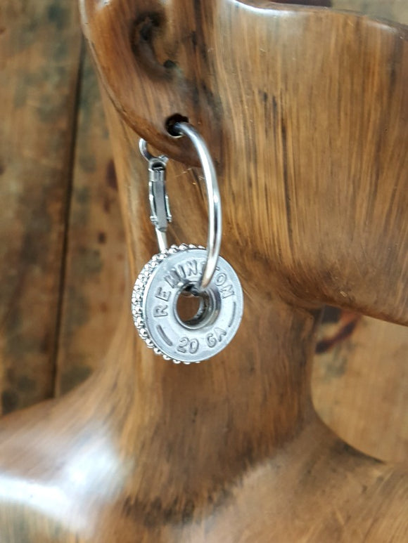 20 Gauge Beaded Stainless Shotshell Hoop Earrings - Brass or Nickel Casings