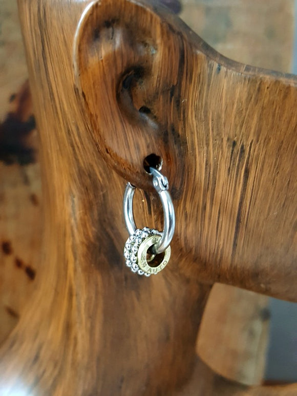 25 Auto Mixed Metal Studded Stainless Petite Bullet Hoop Earrings