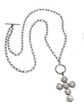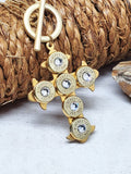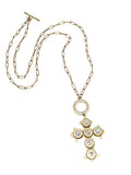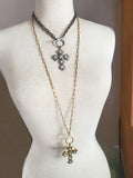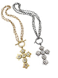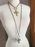 A note on the components: For the gold version, we use gold over stainless steel paper clip chain and a matte gold plated toggle. For the silver version, we use antique silver over brass paper clip chain and a stainless steel toggle. Crosses are either gold over brass or antique silver over brass.