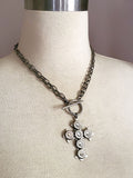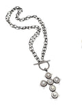 Make a statement with this versatile gothic style cross toggle necklace. Wear it long or short!