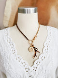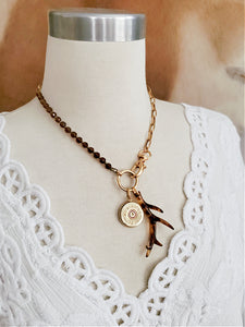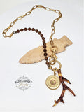 Tortoise Antler & 12 Gauge Topaz Beaded Gold Charm Necklace