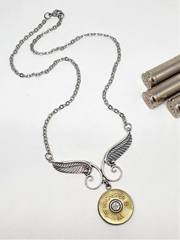 Sterling Silver Angel Wing 12g Shotshell Necklace