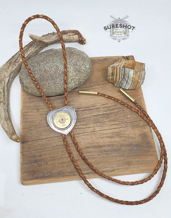 LADIES 12 Gauge Heart Shape Leather Bolo Tie or Lariat Necklace