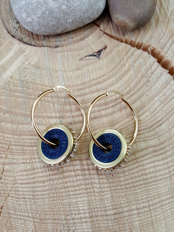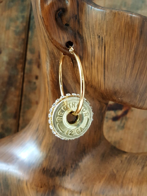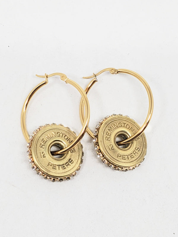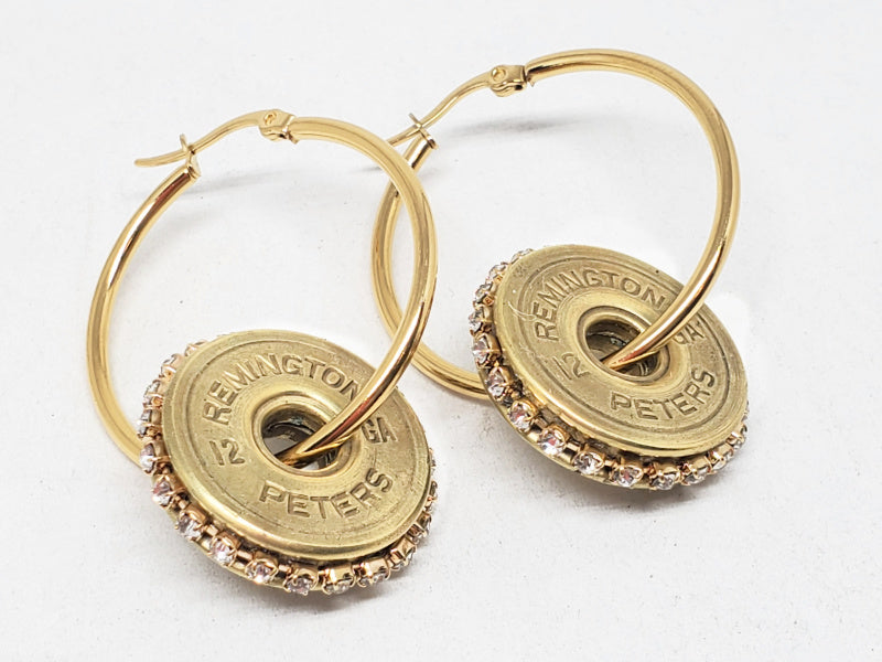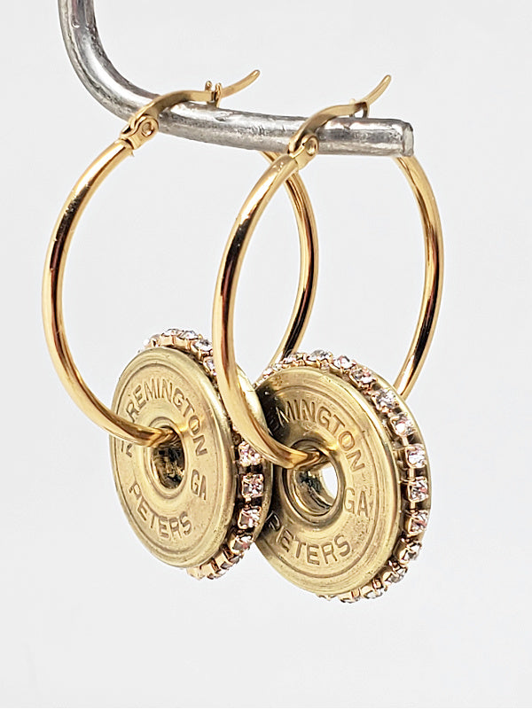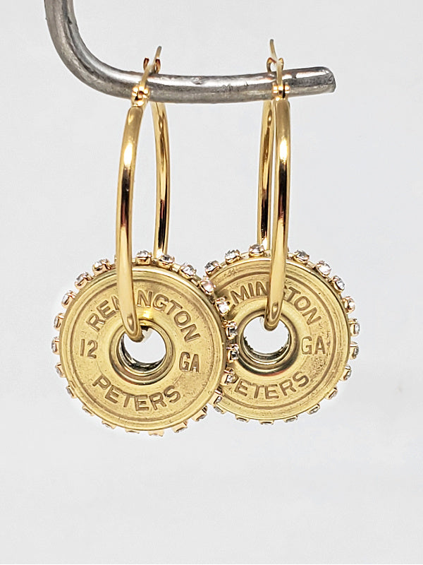 12 Gauge Shotshell Diamond Studded Gold Hoop Earrings