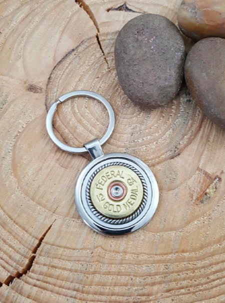 12 Gauge Shotshell Round Stainless Steel Key Ring - Choice of Brands