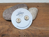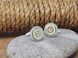 Casings are set using our signature double mounting method giving them both character, detail and a little dimension. Set on quality silver plated cuff link bases. Result is great mixed metal look. A perfect size for cuff links!