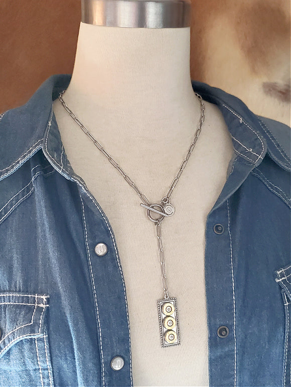 Silver Paperclip Chain Bullet Charm Necklace