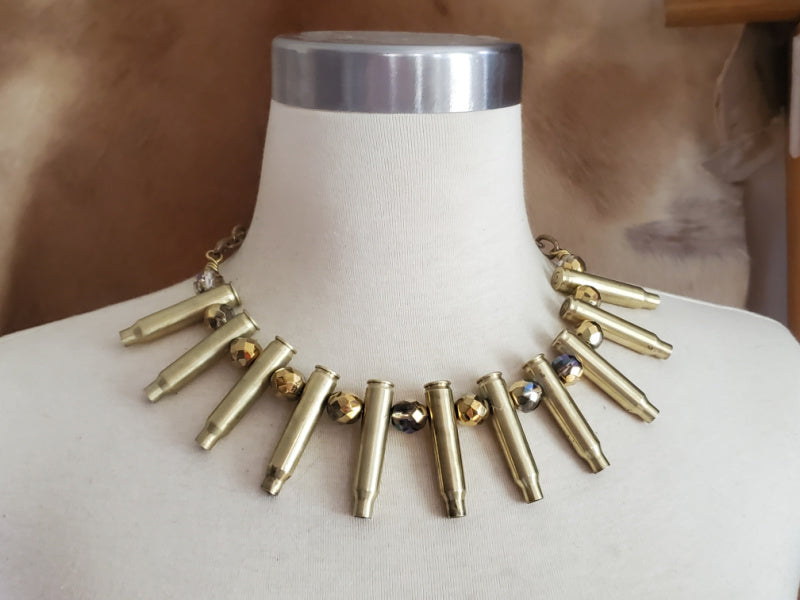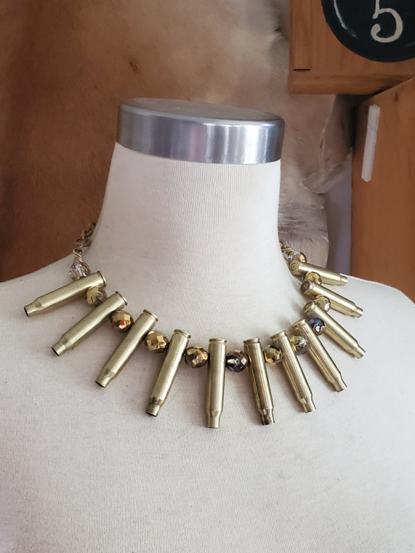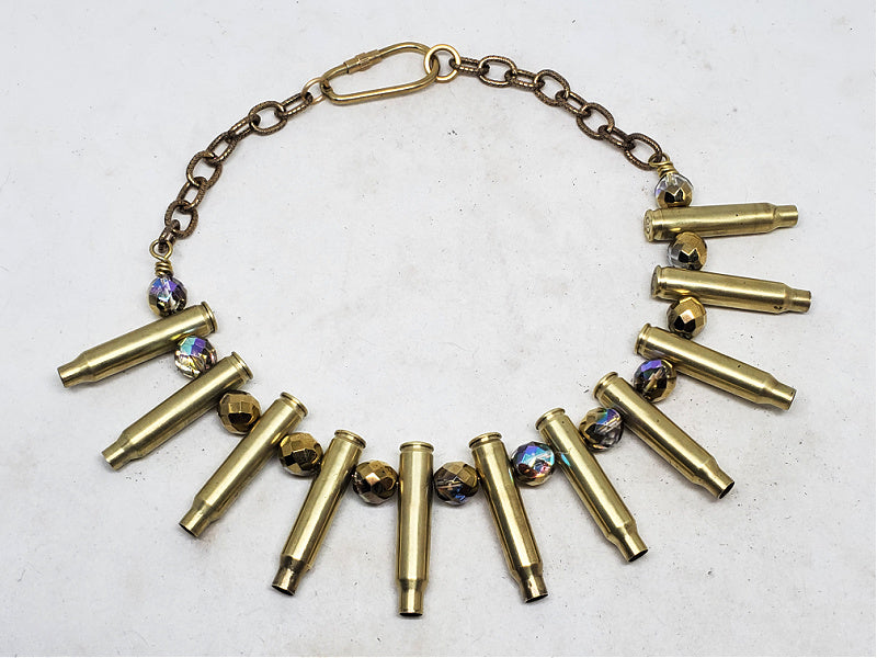 .223 Aurora Borealis Beaded Choker Bullet Necklace