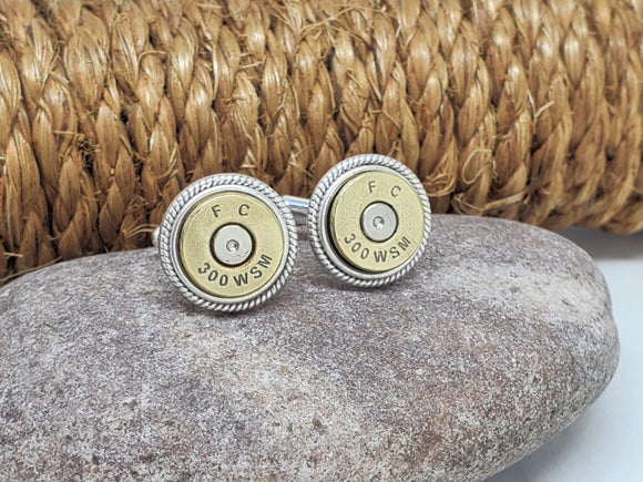 Brass 12 gauge casing on antique silver detailed concho medallion pendant. Silver multi-chains including popular curb chains in two varieties and large stainless ball chain for a trendy look.