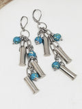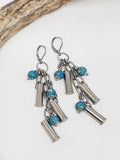 Triple 22 Caliber Turquoise Beaded SILVER Bullet Earrings