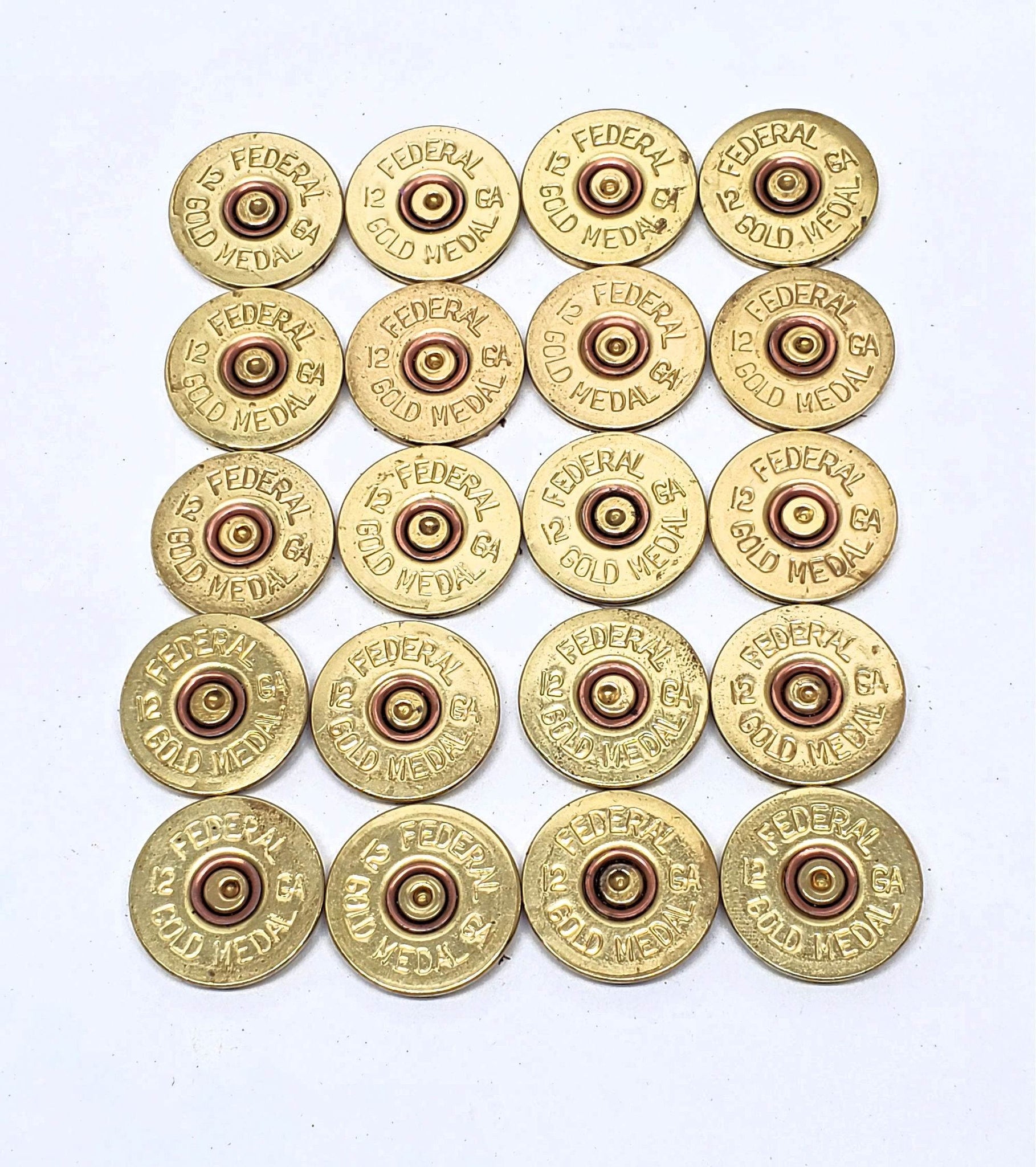 Lots in this listing are for 20 shotshell casings that are FEDERAL GOLD MEDAL 12 gauge. Note that these are the old headstamps that Fiocchi no longer uses.