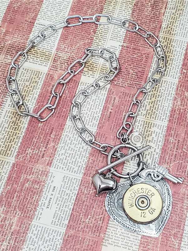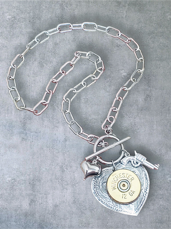 Shotshell Heart Necklace - Shot Thru the Heart 12 Gauge Necklace