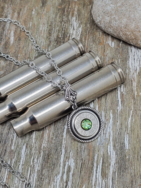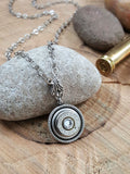 Simple, elegant, yet shows your edgy side, this necklace features a single bullet or rifle casing that has been grinded, sanded and tumbled to a nice shine.