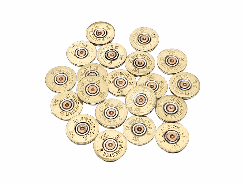 Again, you will receive 20 cut Winchester AA shotshell slices with their spent primers (in same color combo as shown in photos), cut to the profile width as shown (~1.5mm). All casings will be the same, no hodge podge mixes. They will be cleaned and polished and ready to go!