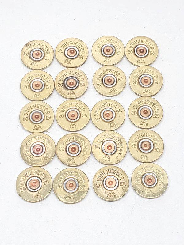 Lot of 20 ready to use Winchester AA brand 20 GAUGE shotshell slices for arts, crafts, woodworking projects. You decide! FREE SHIPPING!
