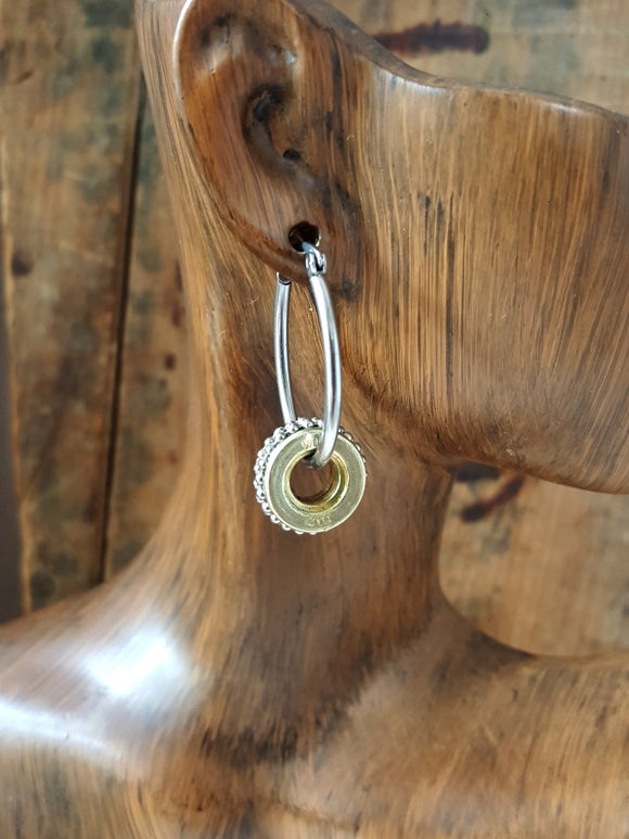 410 Gauge Mixed Metal Studded Stainless Shotshell Oval Hoop Earrings