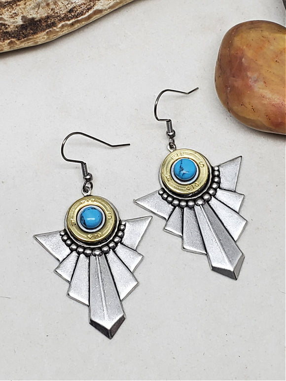 Art Deco Style 410 Gauge Shotgun Casing Turquoise Earrings