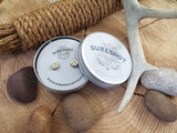 All of our bullet studs and bullet lever backs are presented in our round, branded silver tins. See photos. How cool is that?!