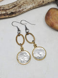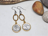**Due to the lack of availability of gold plated nickel size coin bezels, we are using silver plated ones as shown in our other designs. Otherwise, the earrings still have a great mixed metal look. New photos to come.