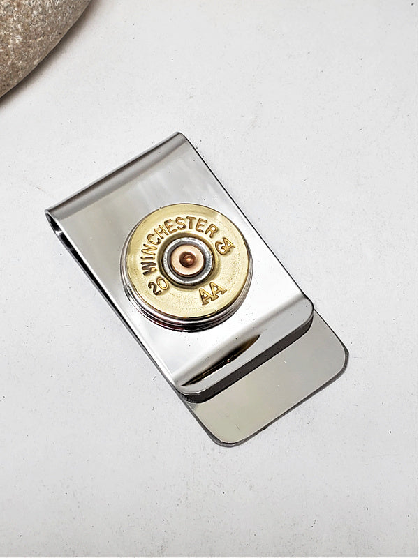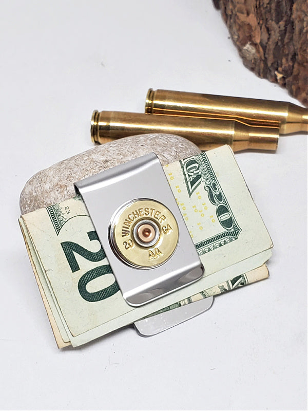 See other listings for many varieties of money clips using 12 gauge shotgun casings, rifle casings and buffalo nickels too.