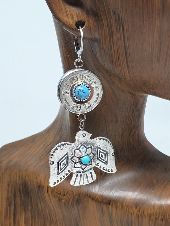 Thunderbird 20 Gauge Shotshell Turquoise Bullet Earrings