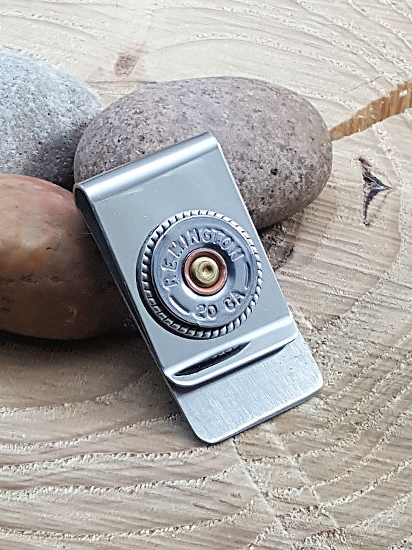See other listings for many varieties of money clips using 12 gauge shotgun casings, rifle casings and buffalo nickels too.