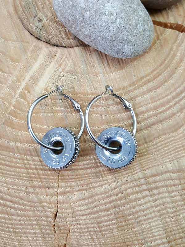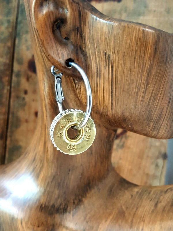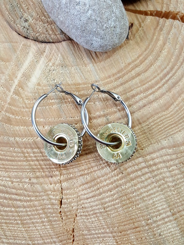 20 Gauge Beaded Stainless Shotshell Hoop Earrings - Brass or Nickel Casings