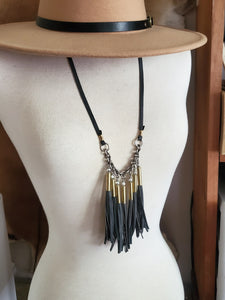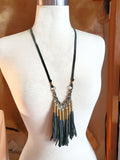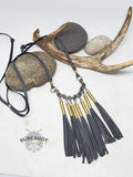 .22 WMR (Magnum) Beaded Gray Leather Fringe or Tassel Adjustable Bullet Necklace