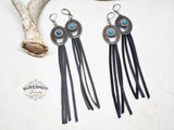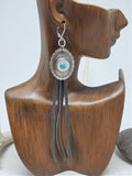 Antique Silver Oval Concho Turquoise & Leather Fringe Bullet Earrings