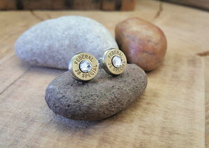 Bullet Studs - Brass Bullet Earrings - ALL CRYSTAL COLORS!