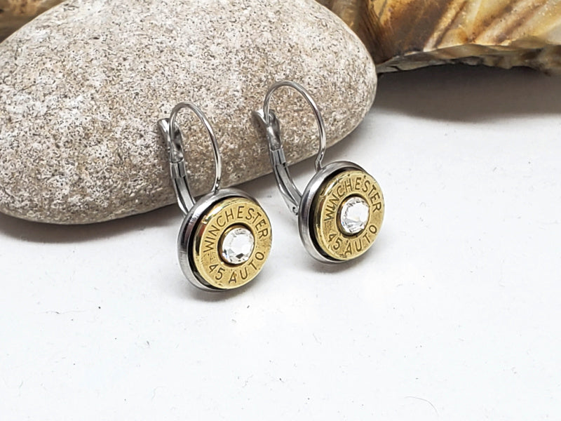 45 Auto Bullet Earrings - Lever Back Style