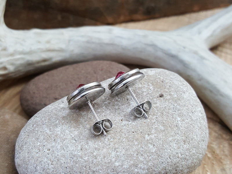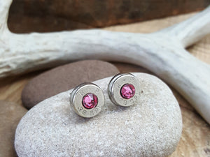 These little earrings feature big style and are a popular diameter choice among our many stud varieties. Set with PINK crystals, perfect to show your support for Breast Cancer Awareness or for an October birthday or just because you love the color pink!