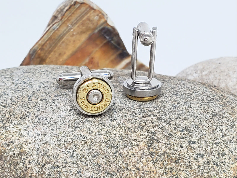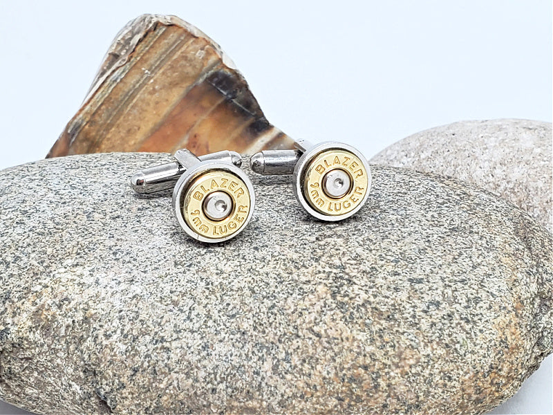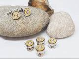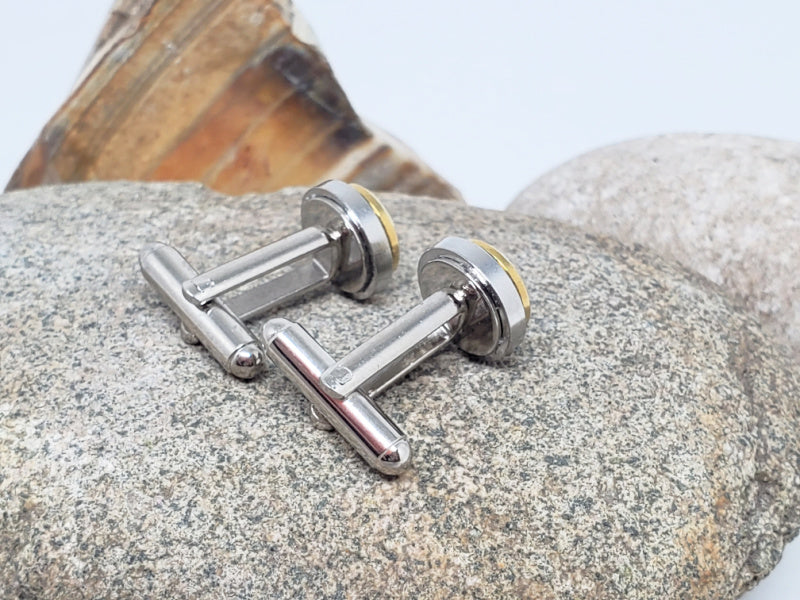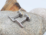Cuff links are constructed using our signature method, set in stainless steel bezels and mounted to quality stainless steel cuff link bases. The results are finished cuff links that look great both front and back and won't harm your cuffs. A perfect size and they make smart gift for your man!
