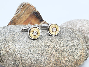 CHOICE of BRASS or NICKEL casings and also caliber. For these settings, we use 9mm, 38 special, 357 mags, or 40 S&W in various major brands. Shown are brass casings in a 9mm caliber.