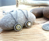 If you would like earrings to match, we have them! We create studs and dangles using these pretty beaded bezels. Search our listings for "beaded bezel" or "25 auto".